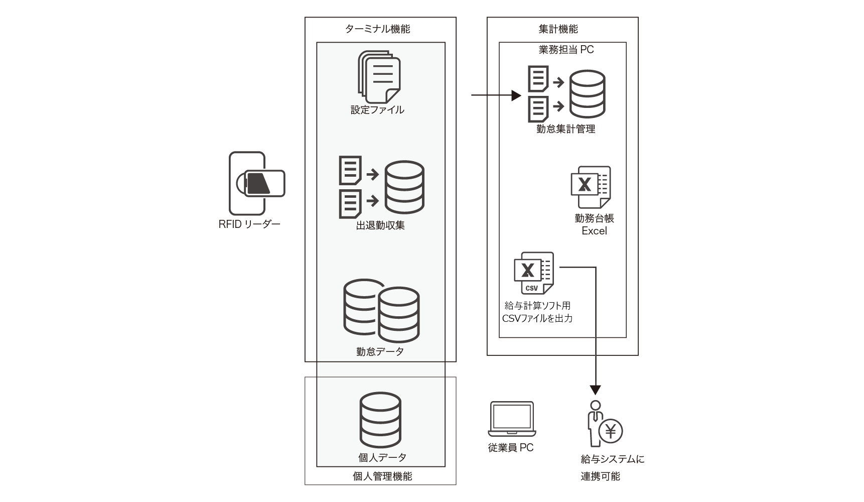 給与計算ソフトにあわせたデータが出力可能なため、低コストでリスクなく勤怠管理と給与計算ソフトを連携できます。
